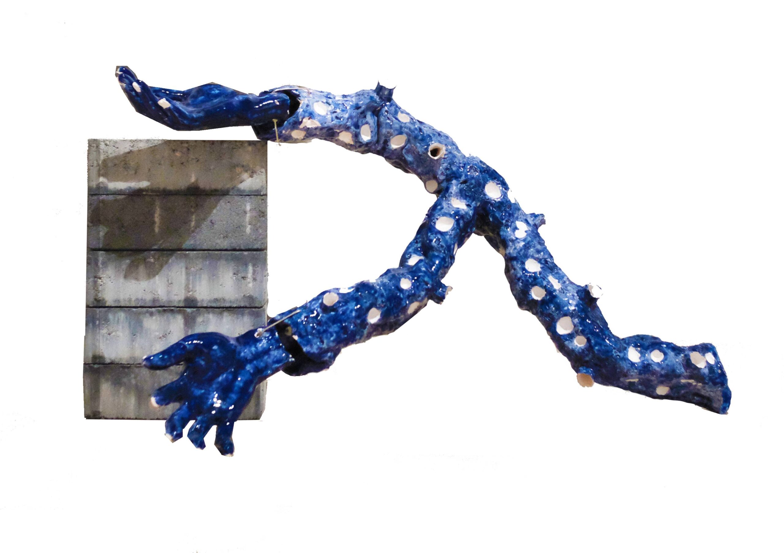 In diesen Skulpturen erinnern die Oberflächen, Hände und Füße an die Haut, die als erste Hülle zur Außenwelt dient, als Empfänger von Spuren, Druckstellen und Narben. Die Fragilität, des keramischen Körpers, eines spröden, Materials steht im Kontrast zur Robustheit, der Metallklammern, die beim Bau und bei der Reparatur von Körpern in der Medizin verwendet werden.
